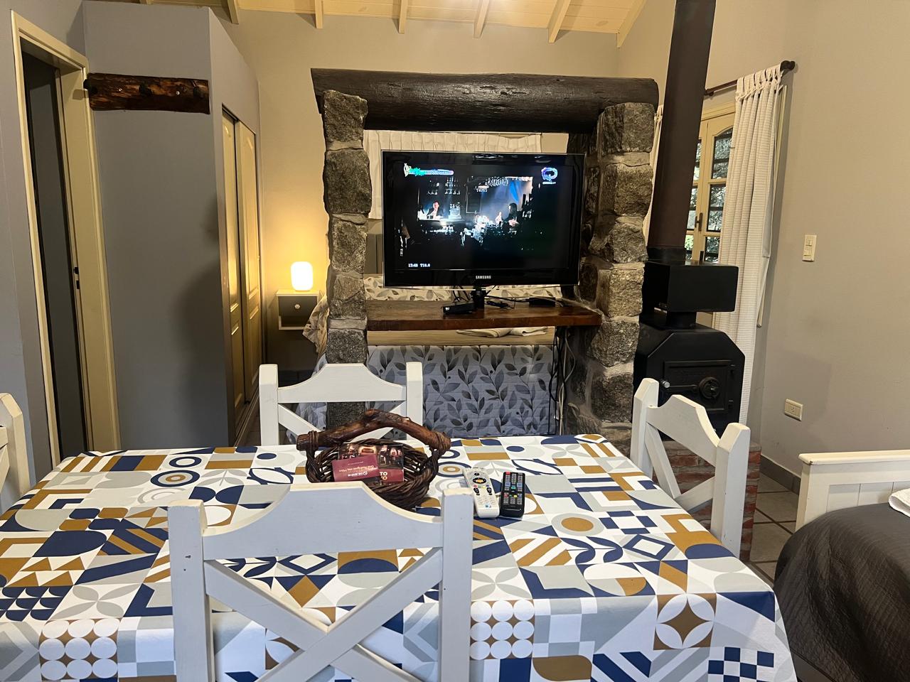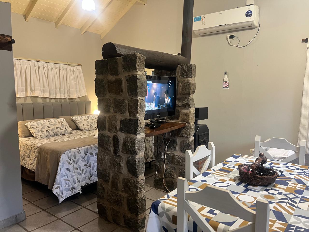 Cama King Size – Aire Acondicionado – Acceso Internet inalámbrico – LCD de 32″ – Sommier matrimonial – Ropa de cama y baño – Cocina con horno – Microondas – Vajilla completa – Heladera – Baño privado – DVD – Direct TV – Estacionamiento y seguridad las 24 Hs. – Calefacción a gas y a leña (estufa hogar) – Parrillas individuales – Muebles estilo campestre.